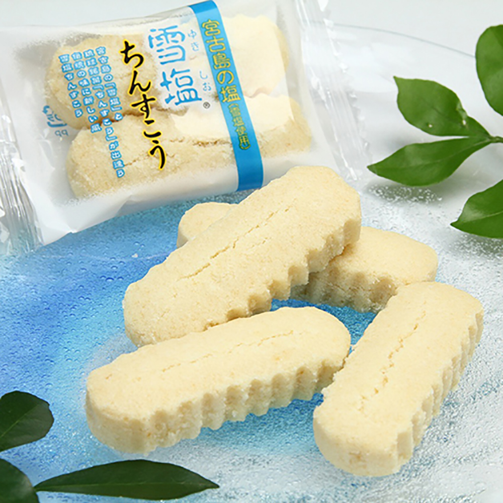 その中でも沖縄の海を思わせるブルーのパッケージの雪塩ちんすこうは、宮古島のパウダー状の『雪塩』との出会いから生まれた逸品!️