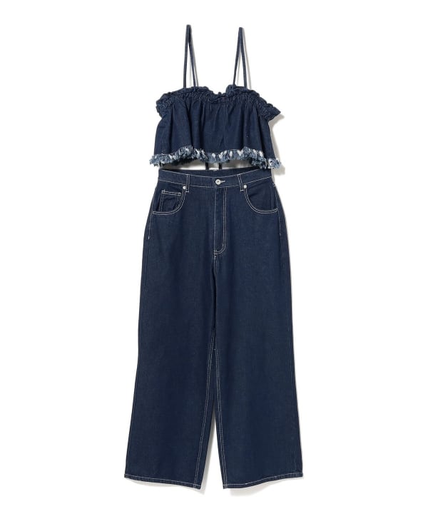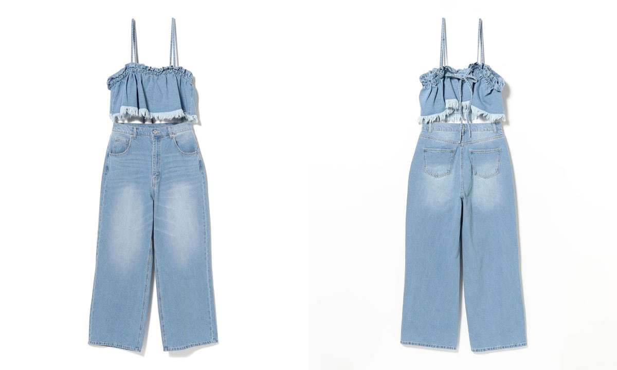 フリル デニム ビスチェ × パンツ