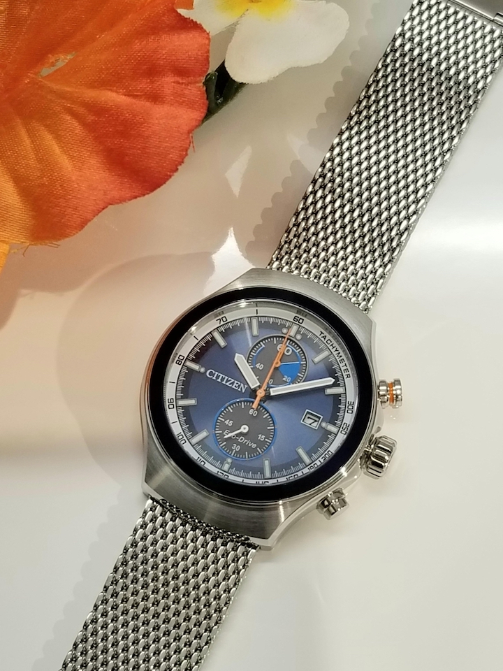 ブルーの爽やかな文字板が